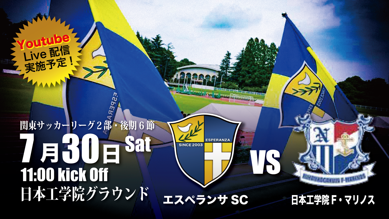 【Live配信告知】7/30(土) KSL2部 後期6節 エスペランサSC vs 日本工学院F・マリノス
