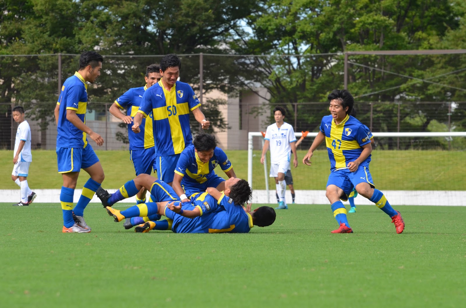 そんなドギマギするような展開の中、82分、柿崎翔太のフリーキックを古川が胸で落とし、井上が強烈なゴラッソでついに追加点!!会場の盛り上がりは最高潮に達した。