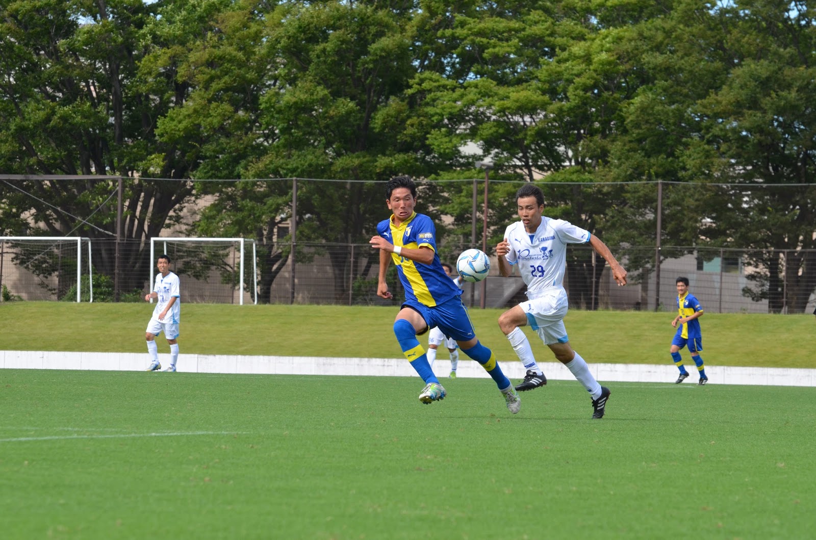 前半21分、北野が右サイドから抜け出すと、中央へグラウンダーの絶妙なクロスを出し、走りこんだ古川がしっかりと決めてゴール!鮮やかな先制点だった。