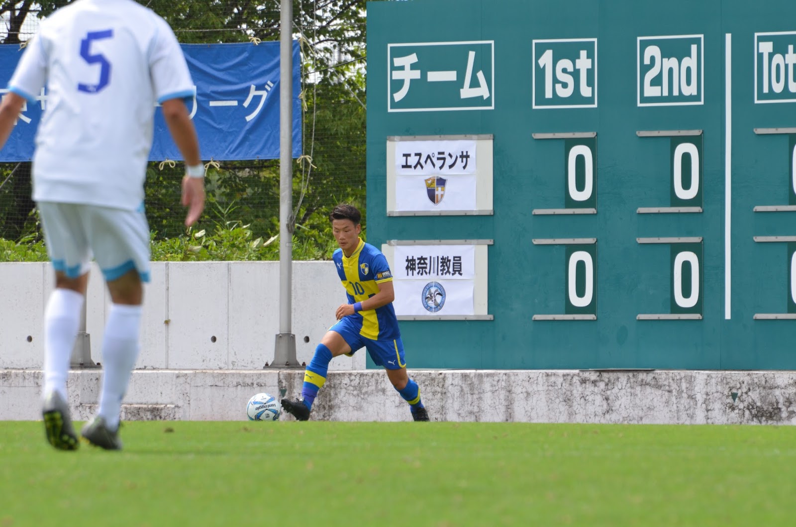 前期の対戦では、後半アディショナルに痛恨の逆転ゴールで手痛い敗戦となり、エスペランサとしてもそこから何か歯車がズレ始めるきっかけとなったこのカード。奇しくも、会場はその時と同じ保土ヶ谷公園サッカー場。今回は、エスペランサSCのホームゲームとして、現在首位の神奈川県教員SCをこの会場に迎えた。