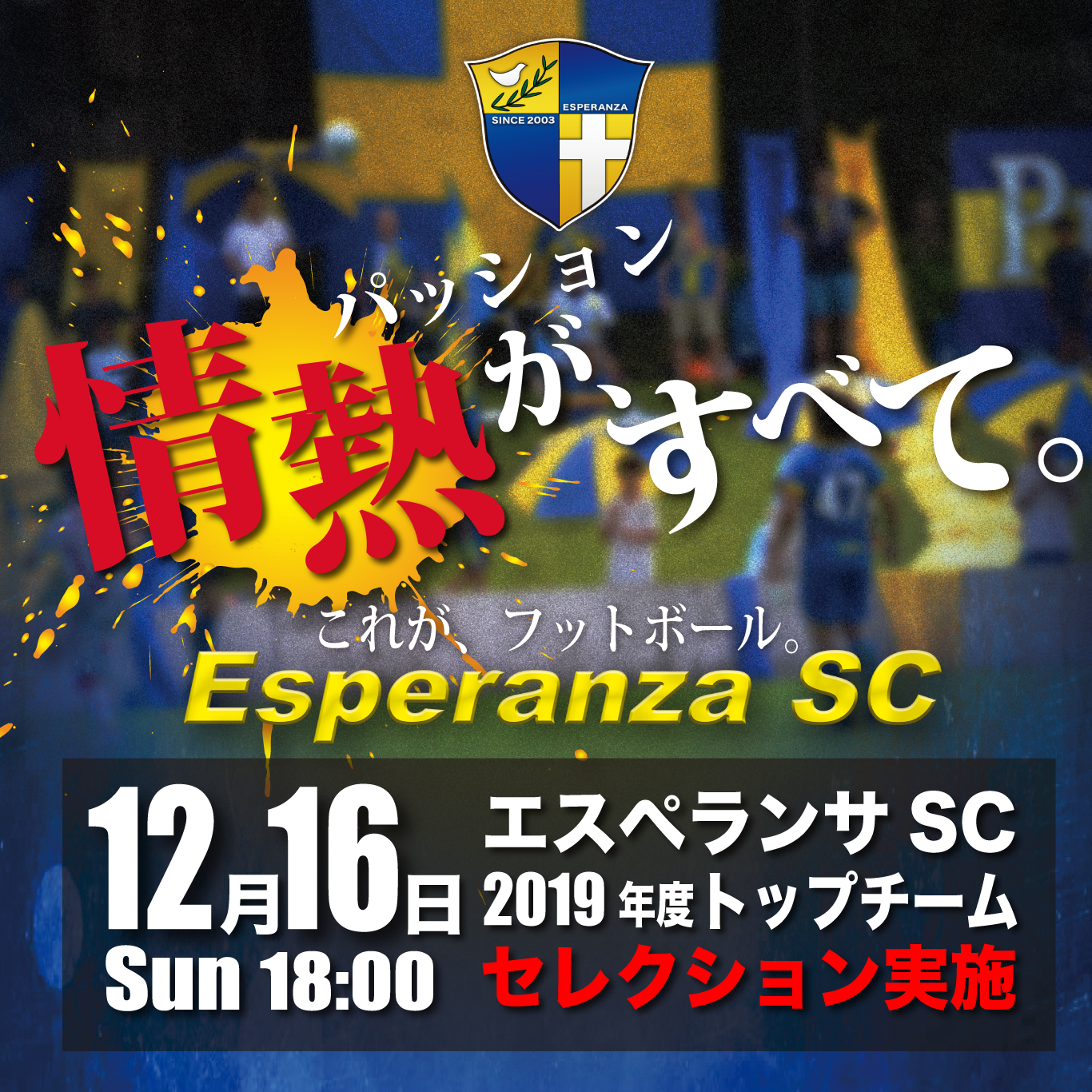 エスペランサSCでは、2019年度トップチームのセレクションを実施いたします。