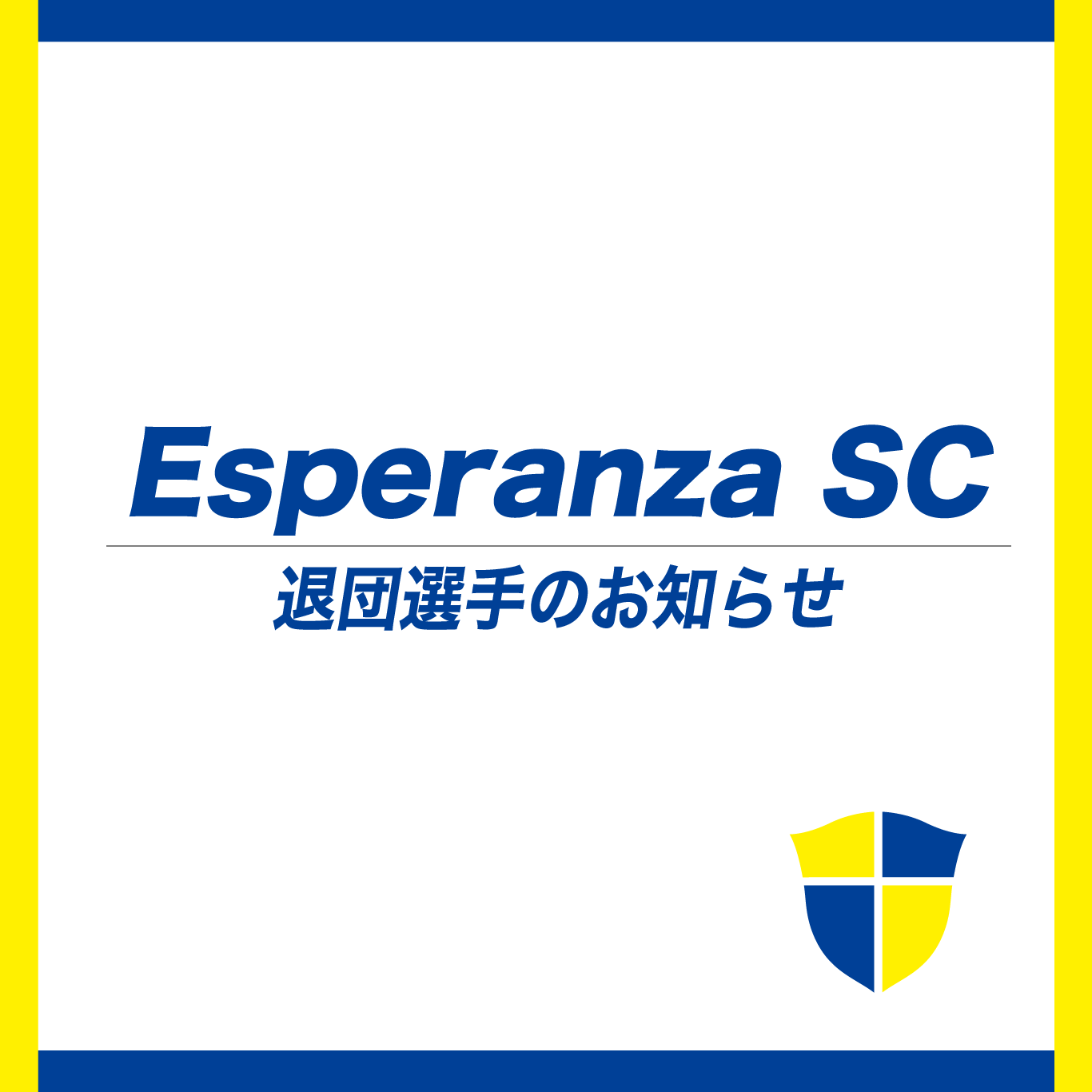 エスペランサSC 退団選手のお知らせ 2021年11月7日 選手情報 Twitter Facebook Hatena Bookmark Pocket LINE 下記の選手が今シーズンでエスペランサSCを退団することが決定しましたので、お知らせします。 1. 鈴木 悠生 GK 3. 田中 竣也 DF 7. 山本 晃稔 FW 13. 大石 駿之介 MF 19. 加藤 壮太 MF 25. 寺内 快登 MF 27. 市木 良 DF 35. 山川 翔也 DF