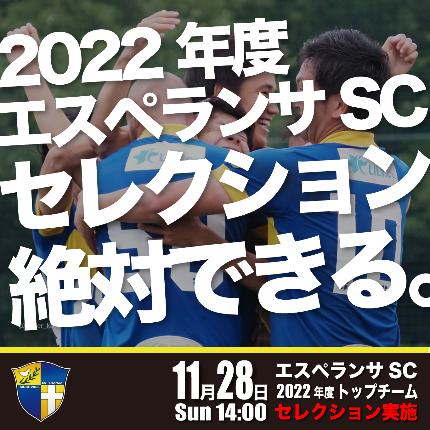 エスペランサSCでは、2022年度トップチームのセレクションを実施いたします。