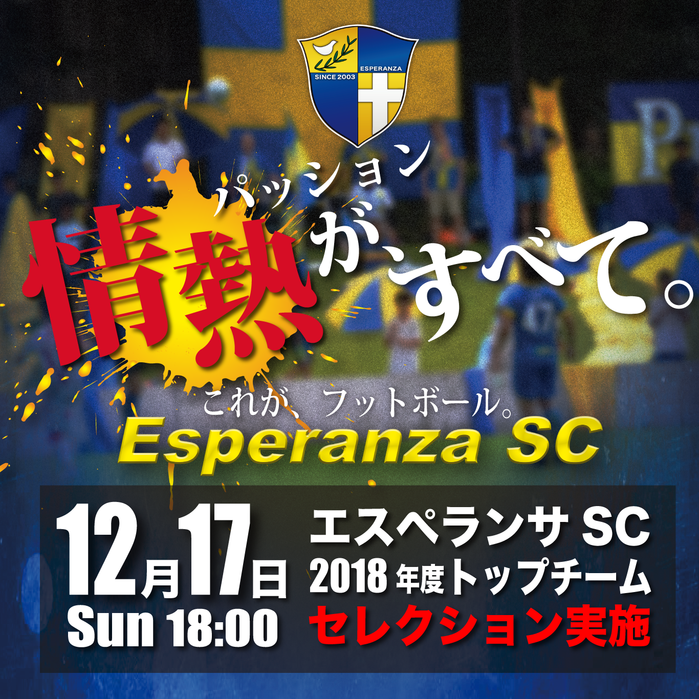 エスペランサSCでは、2018年度トップチームのセレクションを実施いたします。