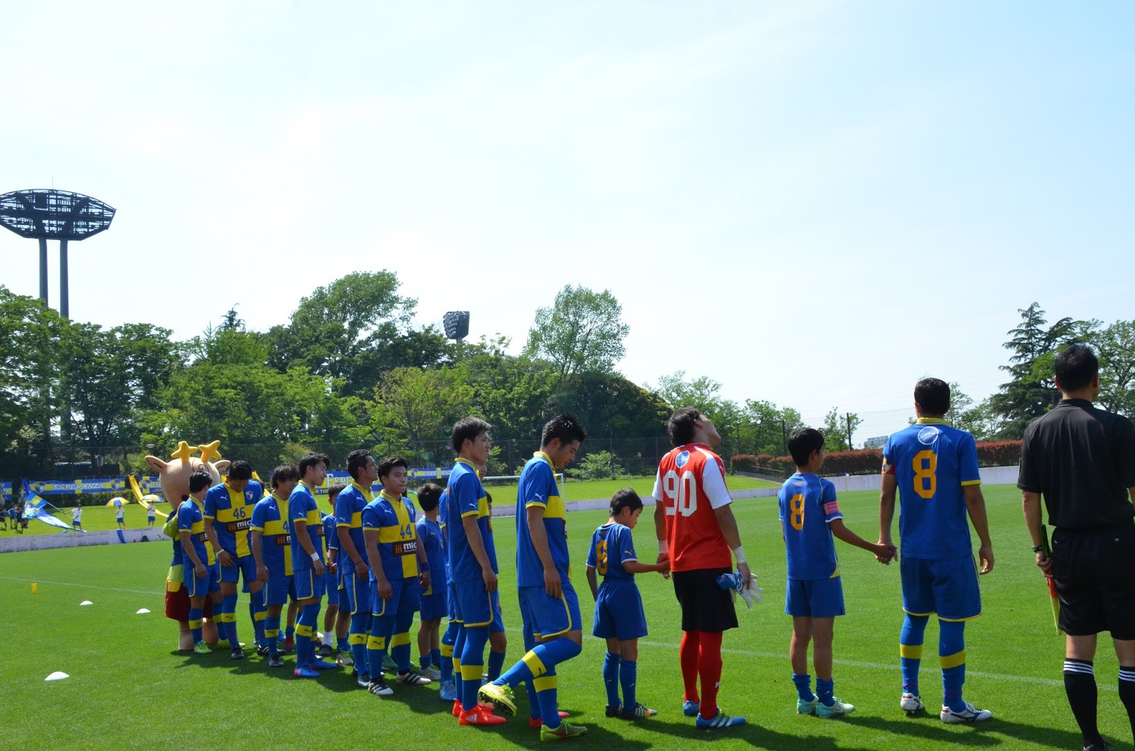 エスペランサSCのジュニアチームであるダビデFC高学年の選手にエスコートされ入場したこの試合。