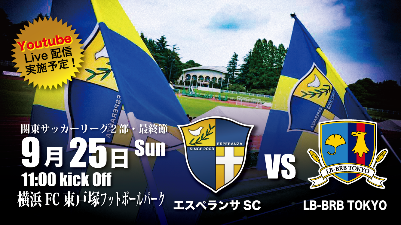 エスペランサSCは、日本工学院グラウンドにて関東サッカーリーグ最終節の試合を戦います。